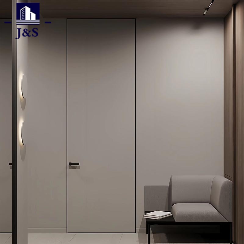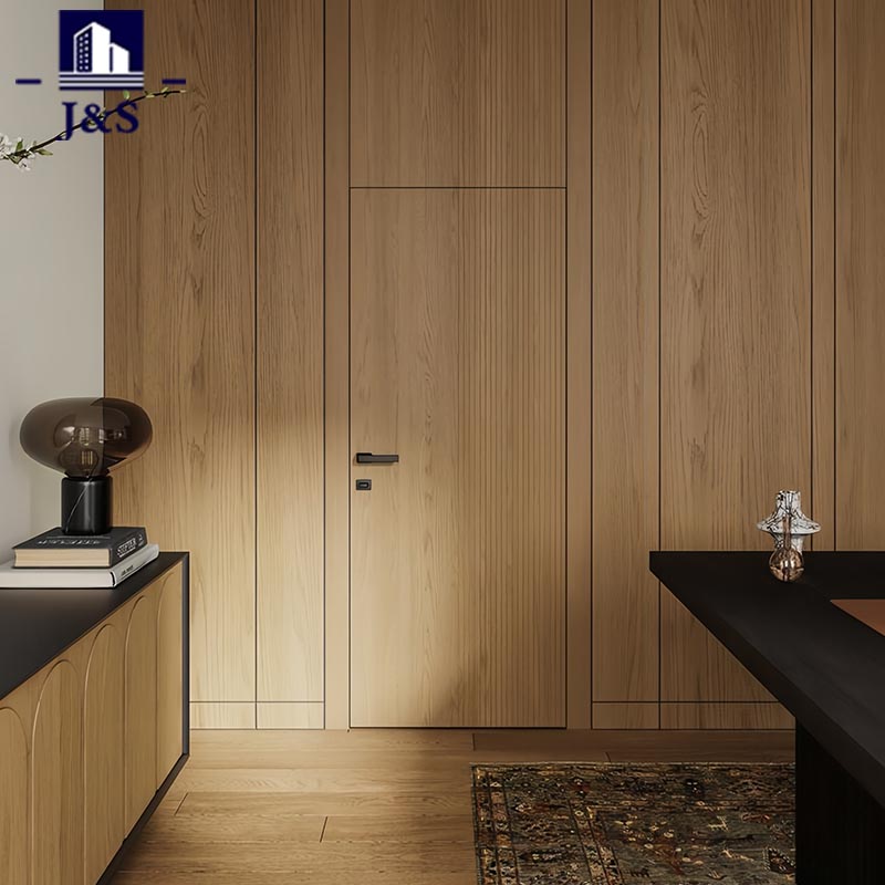 Тези интериорни скрити врати за спалня въплъщават същността на индивидуалния дизайн на цялата къща, идеално подравнявайки се с предпочитаната от младите хора модерна естетика. Безпроблемно интегрирани в стената, вратите премахват традиционните рамки на вратите и обемистите ръбове, създавайки чист, непрекъснат визуален поток, който размива границата между врата и стена. Гладките повърхности в неутрални тонове и елегантните метални дръжки допълват заобикалящите ги минималистични мебели и мекото амбиентно осветление, отразявайки спокоен, изискан начин на живот. Този дизайн дава приоритет на пространствената кохерентност и подчертаната елегантност, което го прави топ избор за млади собственици на жилища, които ценят простотата, функционалността и сплотената жизнена среда без излишни неща. Той трансформира обикновените врати във фини, стилни елементи, които подобряват цялостното усещане за пространство и модерност.