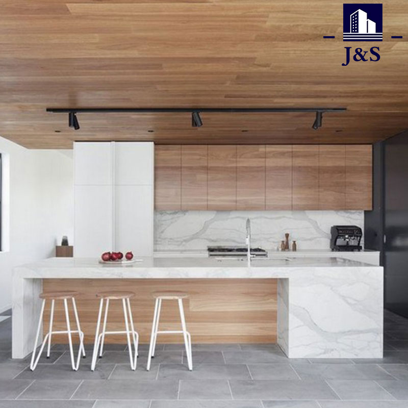 Оригиналният дървесен цвят ви връща към природата и се чувствате спокойни. Същата меламинова врата създава голямо количество интелигентен модерен дизайн. Комбинация от плътен цвят с цвят на дърво и подходяща черна дръжка, за да отрази усещането за лукс. Разполагаме с богат опит дизайнери, които да създадат вашата топла кухня специално за вас. Спалня, баня.